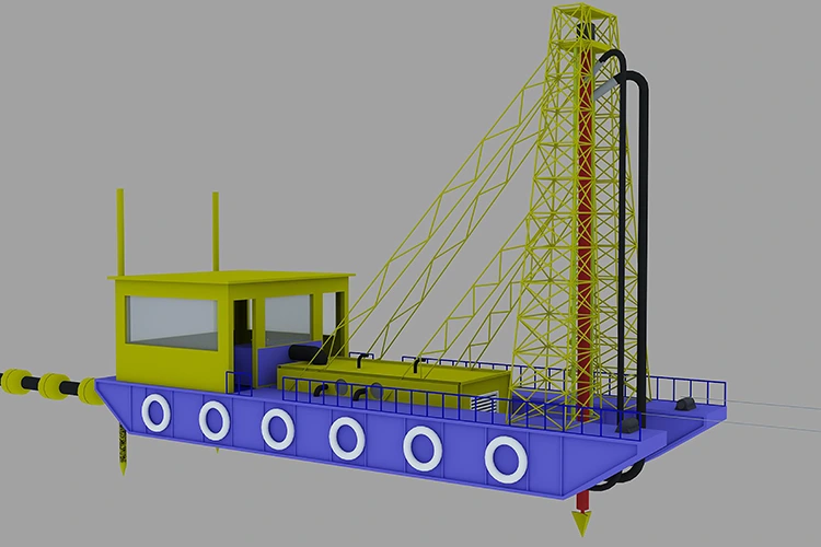 A HAIDING SHIPYARD sugárszívó kotrógép alapvető működési rendszere egy nagynyomású vízszivattyúból és egy szívószivattyúból áll, amelyek együttesen biztosítják a hatékony víz alatti üledékkivonást.